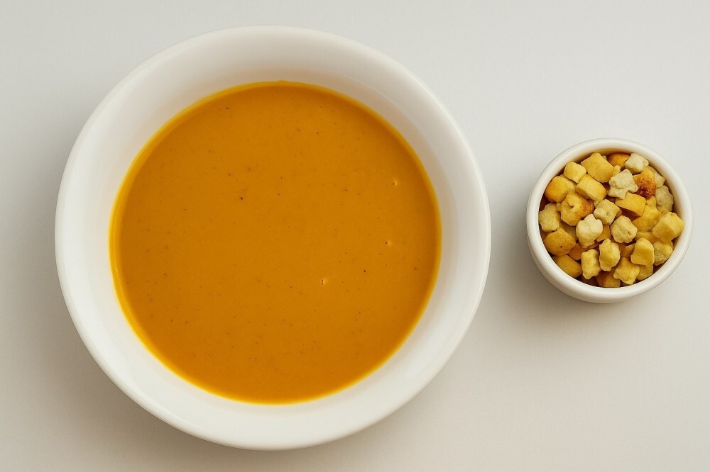 Этот густой и нежный суп обладает утончённым вкусом. В его основе – тыква, которая придаёт ему характерный аромат и лёгкую сладость. Дополняют вкус овощи – лук, картофель и морковь, а сливки делают текстуру более кремовой