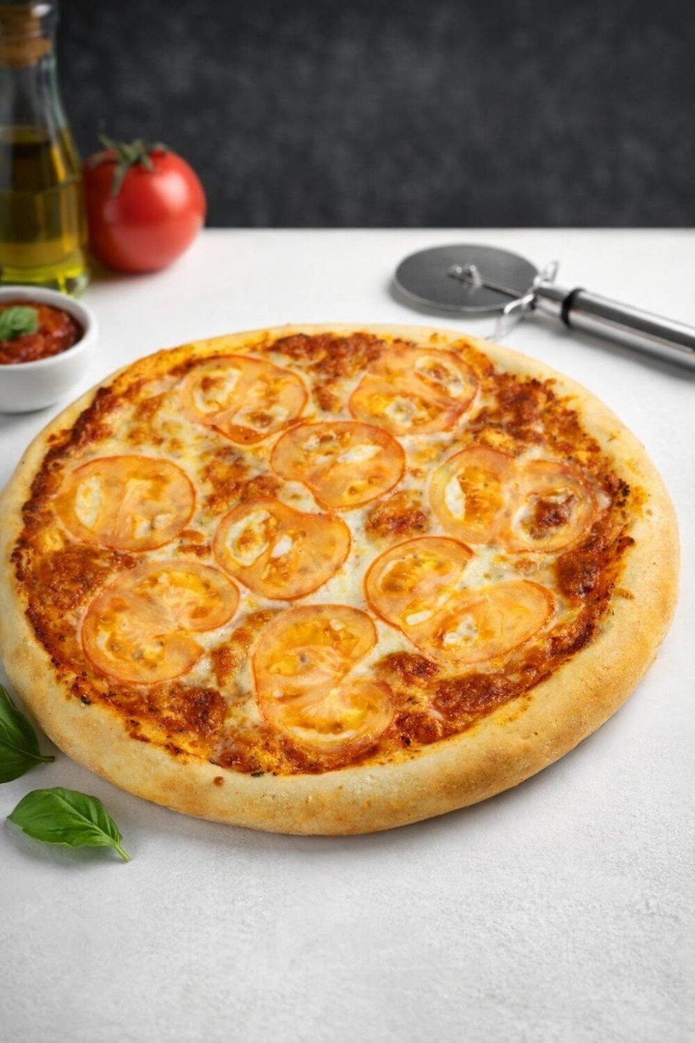 Эта версия знаменитой пиццы Маргариты выполнена в лучших традициях грузинской кухни.Тесто тонко раскатано и выпечено до золотистой корочки. Поверх него распределены спелые помидоры слегка приправленные маслом